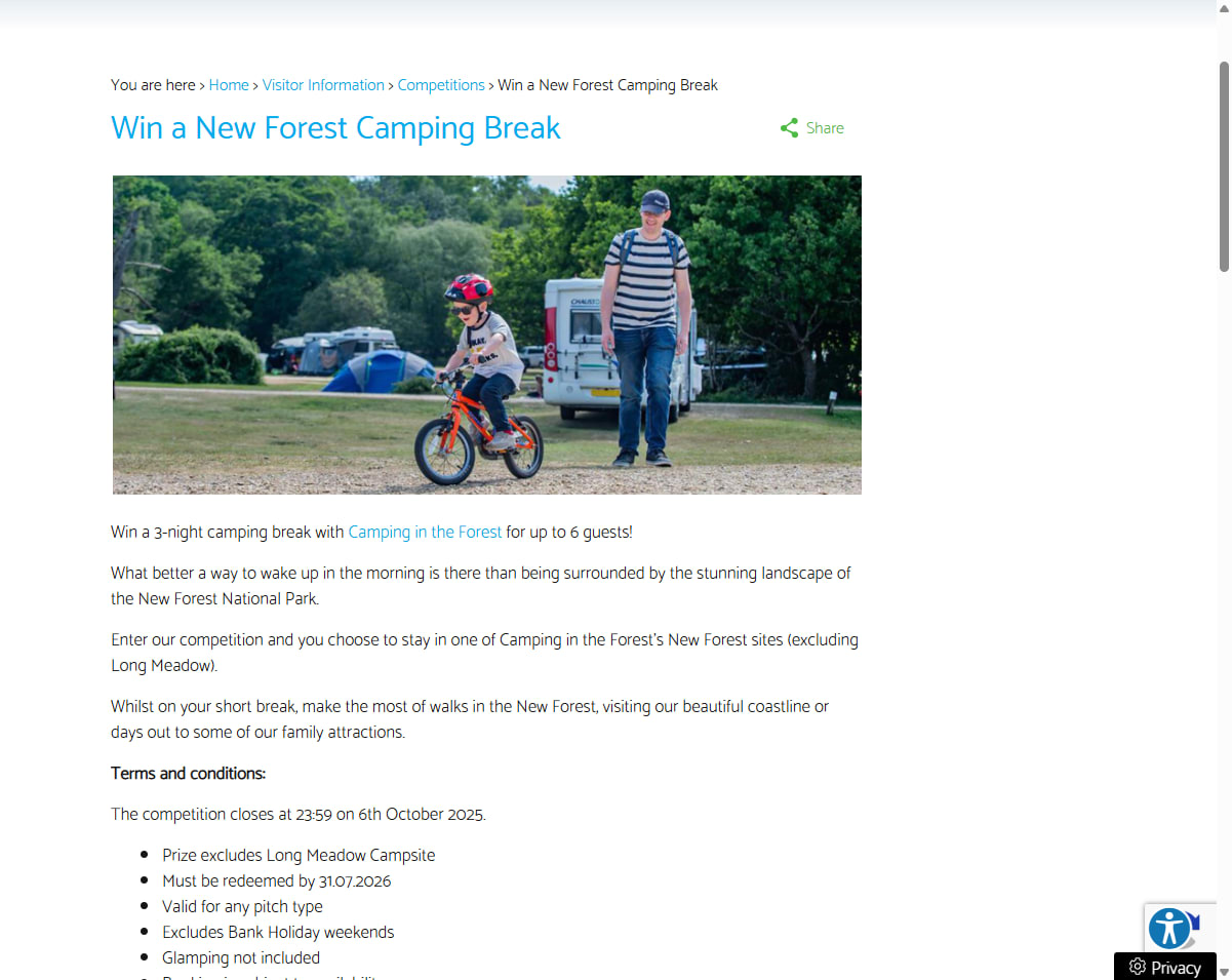 What better a way to wake up in the morning is there than being surrounded by the stunning landscape of the New Forest National Park. Enter our competition and you choose to stay in one of Camping in the Forest's New Forest sites (excluding Long Meadow).