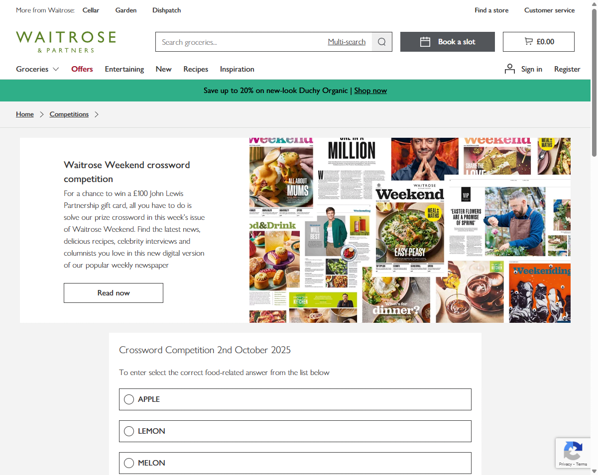 For a chance to win, all you have to do is solve our prize crossword in this week's issue of Waitrose Weekend, and the shaded squares will spell out the prize word, which has a cooking-related theme.