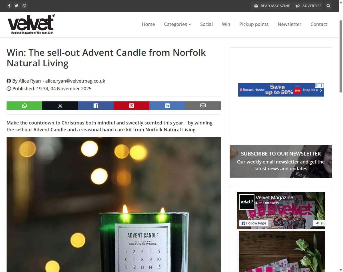 It’s sold out three years in a row. A single sniff of Norfolk Natural Living’s Advent Candle - conjuring oranges studded with cloves, mulled wine bobbing with cinnamon sticks and the earthy warmth of mossy woods and musk - and it’s not hard to see why: it’s Christmas in a (very elegant fir-green) glass jar.
