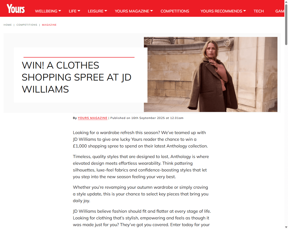 Looking for a wardrobe refresh this season? We’ve teamed up with JD Williams to give one lucky Yours reader the chance to win a £1,000 shopping spree to spend on their latest Anthology collection.
