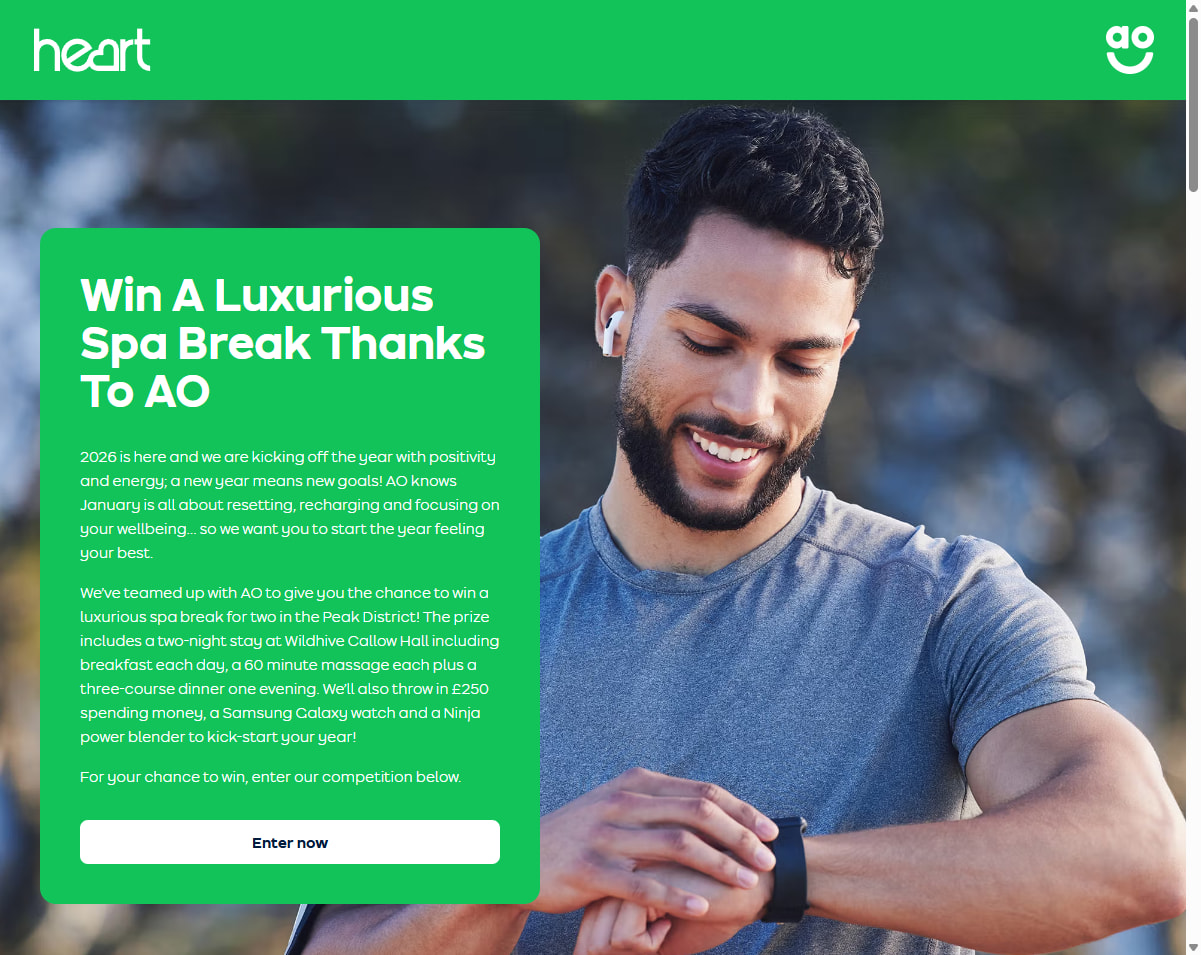 We’ve teamed up with AO to give you the chance to win a luxurious spa break for two in the Peak District!