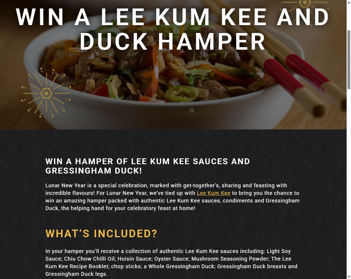 Lunar New Year is a special celebration, marked with get-together’s, sharing and feasting with incredible flavours! For Lunar New Year, we’ve tied up with Lee Kum Kee to bring you the chance to win an amazing hamper packed with authentic Lee Kum Kee sauces, condiments and Gressingham Duck, the helping hand for your celebratory feast at home!