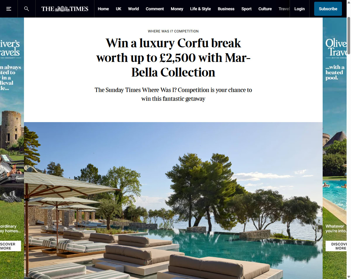 The prize also includes a budget of €500 for return flights from the UK to Corfu. It must be taken in May, June, July, or September, 2026, subject to availability and excluding public holidays. The total flight budget for the prize is for €500, for two economy-class return flights from the UK to Corfu, which will be booked by a Mar-Bella Collection travel agency partner.
