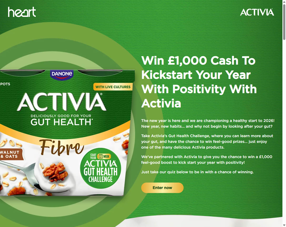 We’ve partnered with Activia to give you the chance to win a £1,000 feel-good boost to kick start your year with positivity!