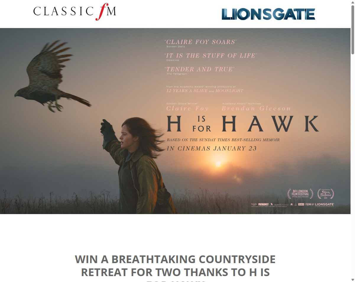 To celebrate the cinematic release of H Is For Hawk, we’ve partnered with the film to offer you the chance to win a countryside retreat in Bath for two, including three nights accommodation at The Oak House, a Hawk Walk experience, plus travel and £300 spending money.