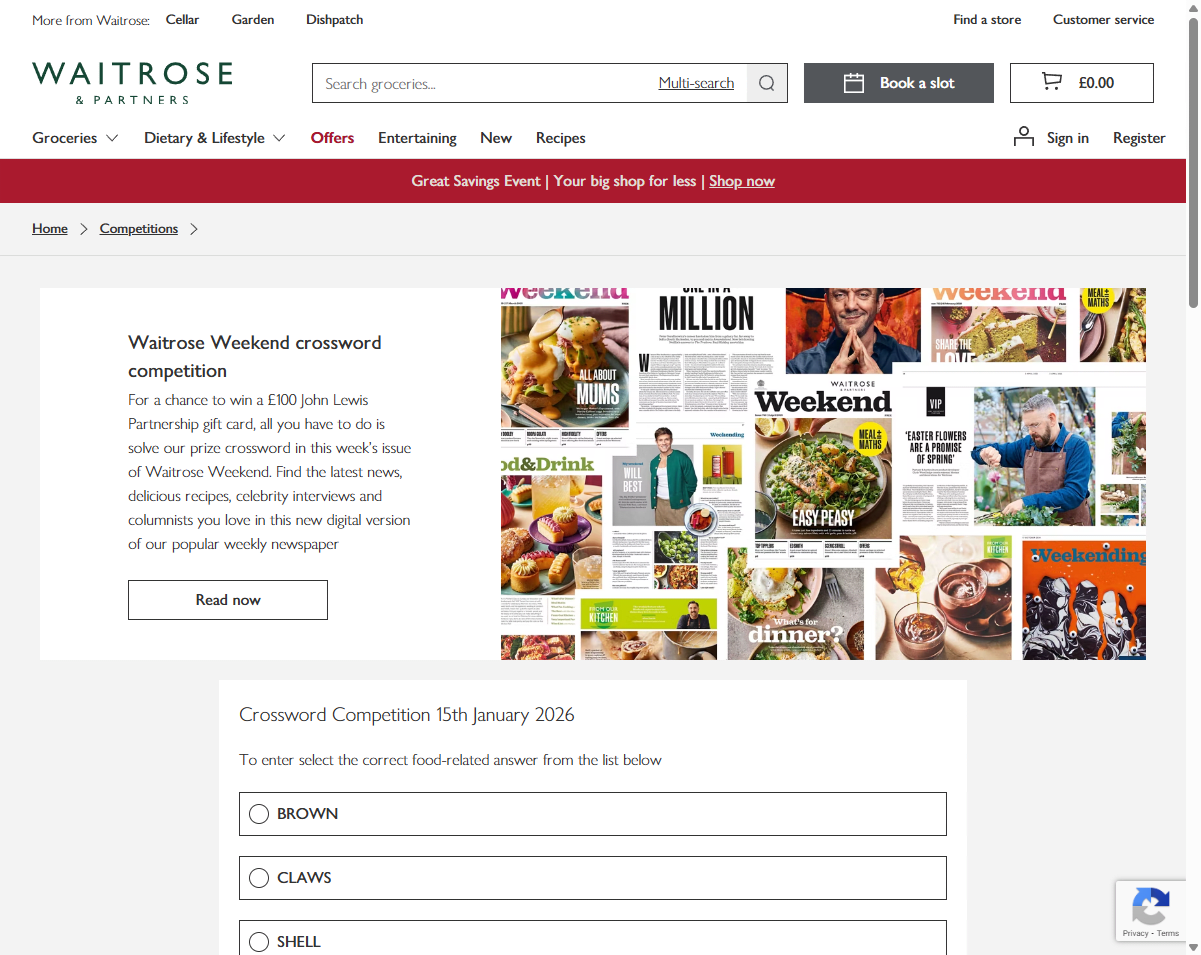 For a chance to win, all you have to do is solve our prize crossword in this week's issue of Waitrose Weekend, and the shaded squares will spell out the prize word, which has a cooking-related theme.