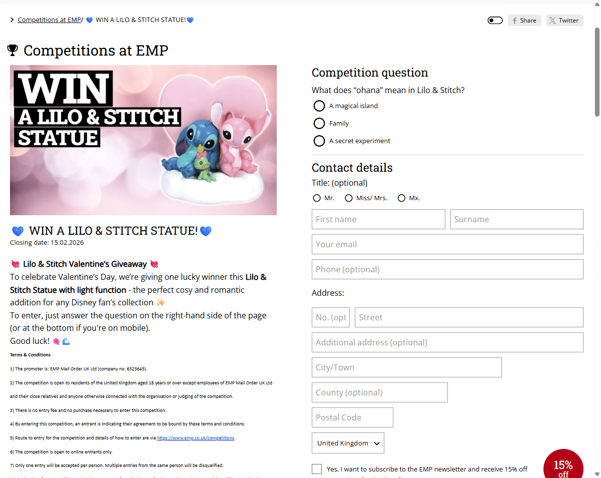 To celebrate Valentine’s Day, we’re giving one lucky winner this Lilo & Stitch Statue with light function - the perfect cosy and romantic addition for any Disney fan’s collection
