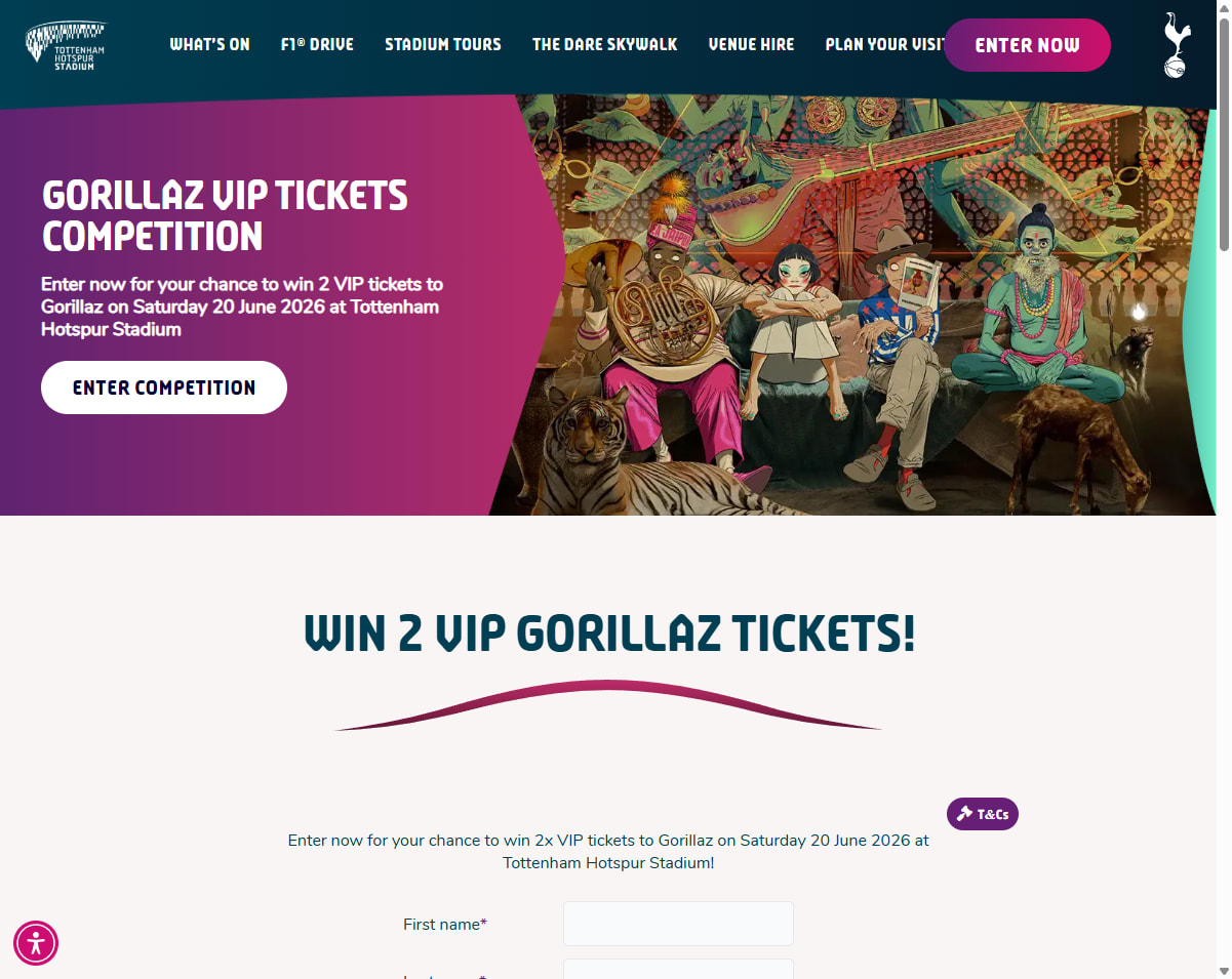 Enter now for your chance to win 2x VIP tickets to Gorillaz on Saturday 20 June 2026 at Tottenham Hotspur Stadium!