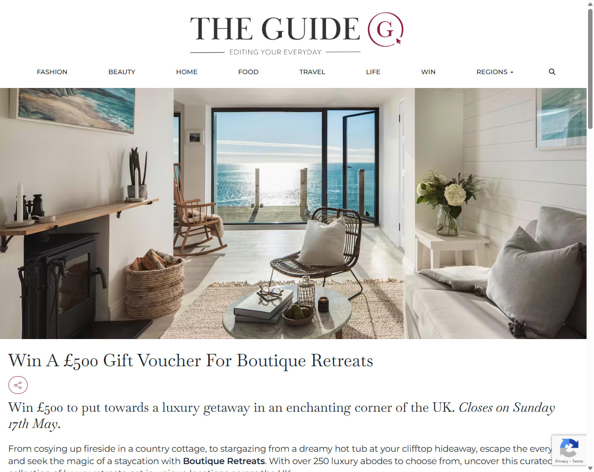 Preview £500 Gift Voucher For Boutique Retreats Getaway Competition