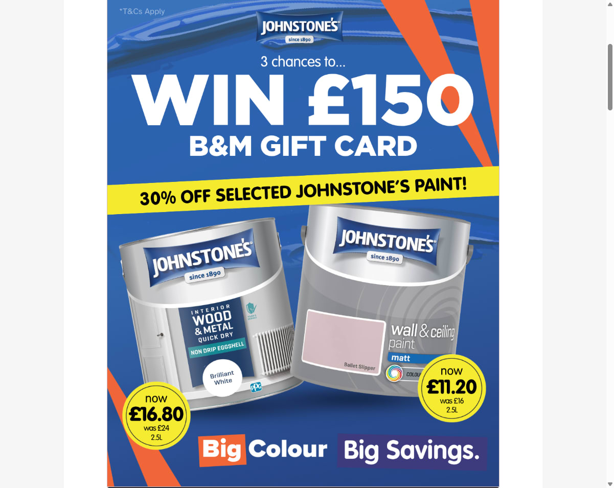 B&M's BIG COMPETITION - THREE Chances to WIN a £150 B&M Gift Card, Courtesy of Johnstone's Paints!