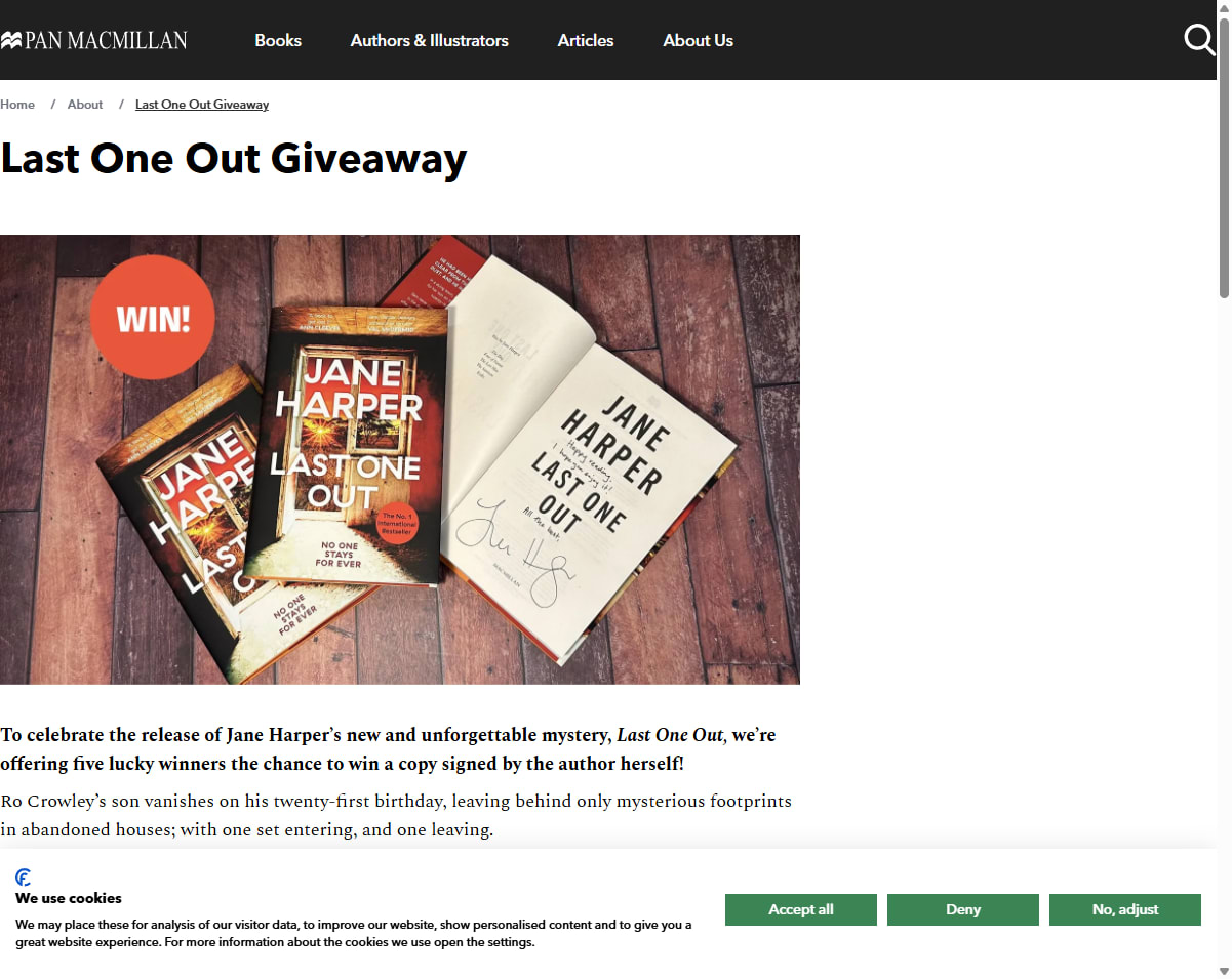 To celebrate the release of Jane Harper’s new and unforgettable mystery, Last One Out, we’re offering five lucky winners the chance to win a copy signed by the author herself!