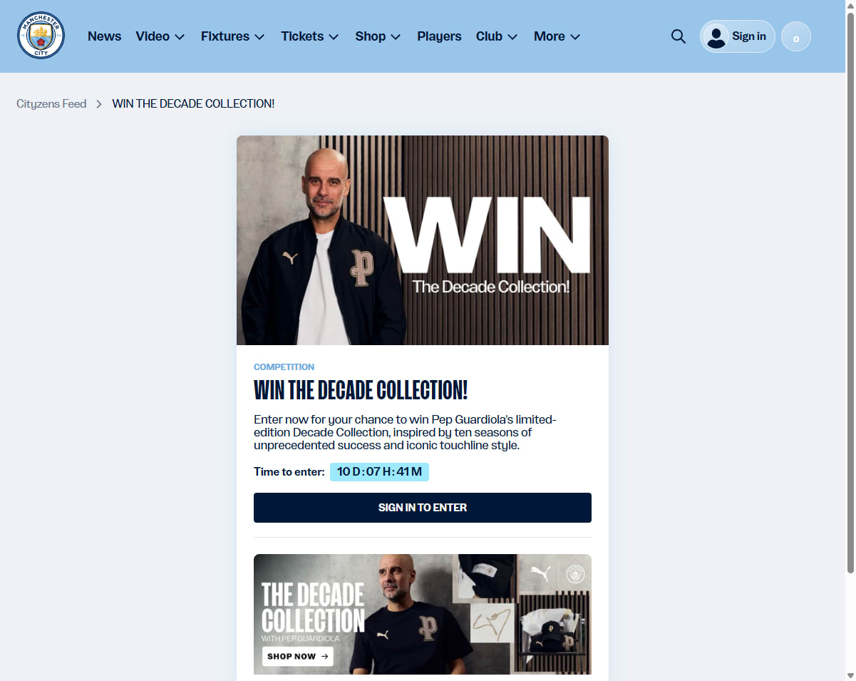 Enter now for your chance to win Pep Guardiola's limited-edition Decade Collection, inspired by ten seasons of unprecedented success and iconic touchline style.