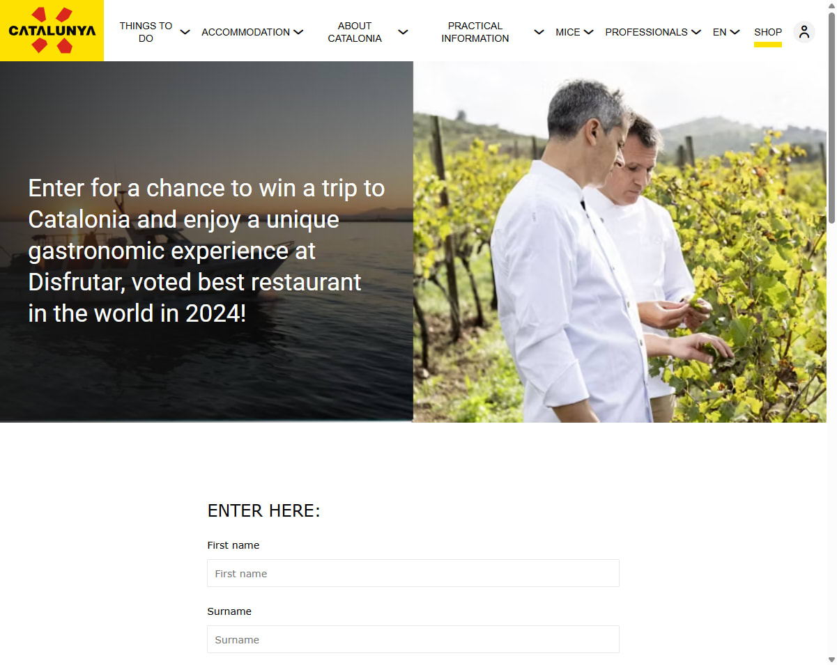Enter for a chance to win a trip to Catalonia and enjoy a unique gastronomic experience at Disfrutar, voted best restaurant in the world in 2024! Train or plane ticket (round trip) for 2 people.