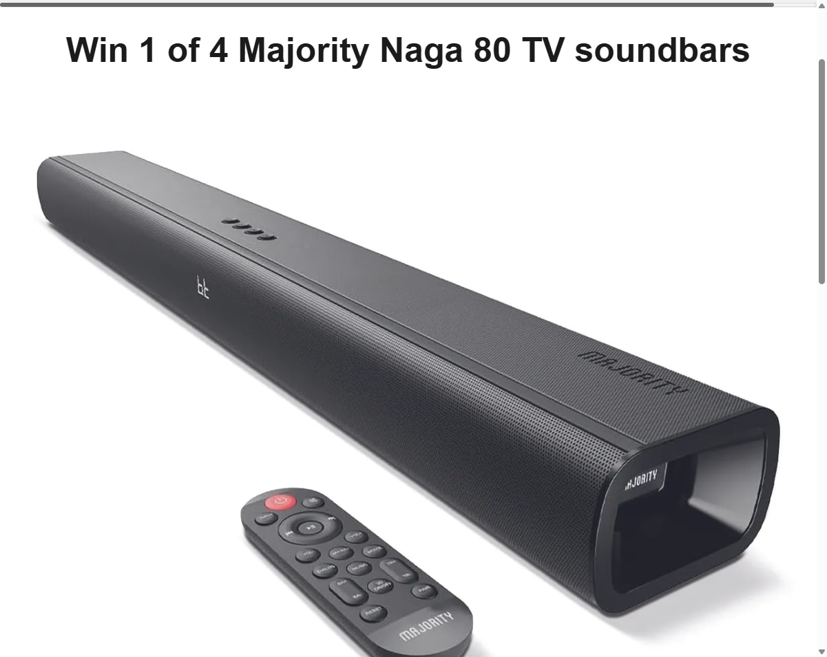 With a built-in 2.5in subwoofer and two 2.25in speaker drivers for immersive audio and seamless HDMI Arc integration, the Majority Naga 80 delivers cinematic sound to the living room for entrancing entertainment.