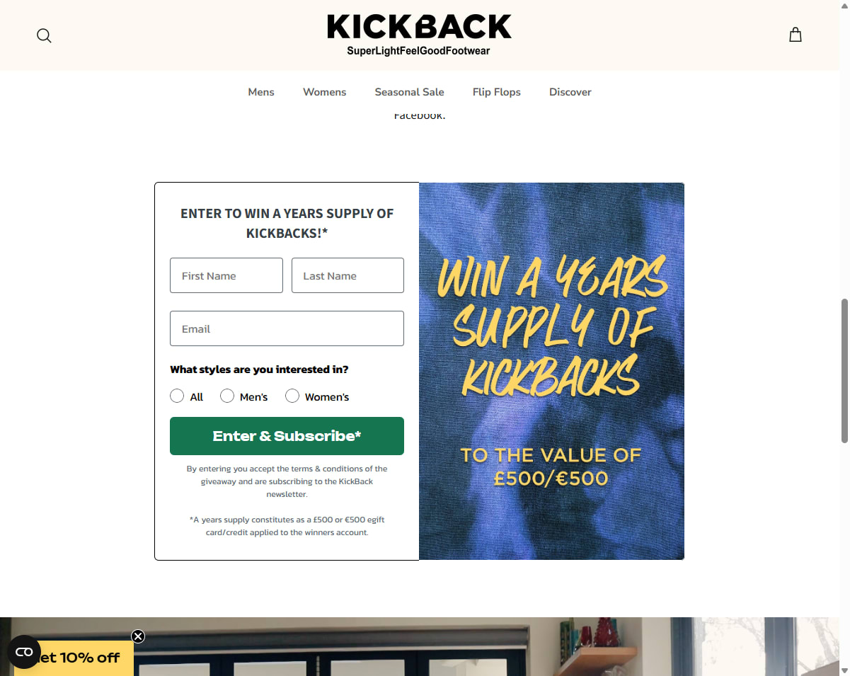 We're giving one person the chance to win a years supply* of KickBack shoes from our website.