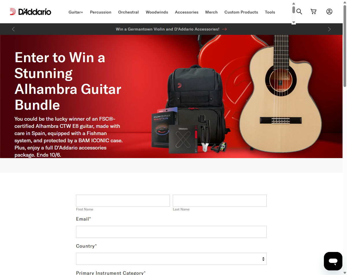You could be the lucky winner of an FSC®-certified Alhambra CTW E8 guitar, made with care in Spain, equipped with a Fishman system, and protected by a BAM ICONIC case. Plus, enjoy a full D’Addario accessories package. Ends 10/6.