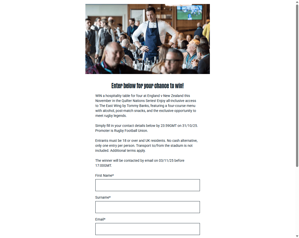 WIN a hospitality table for four at England v New Zealand this November in the Quilter Nations Series!