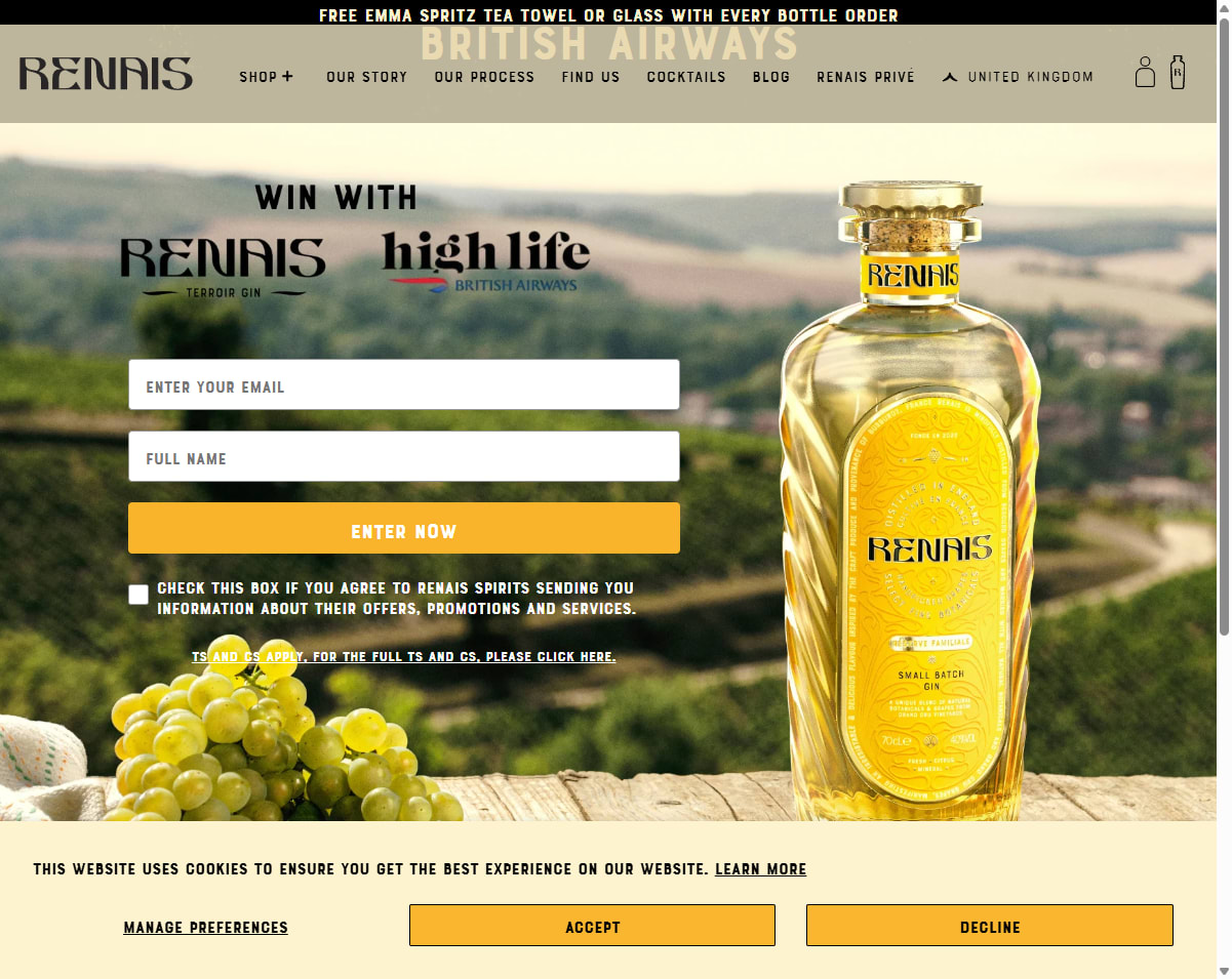 - 1x bottle of Renais Grand Cru Cask Aged Gin